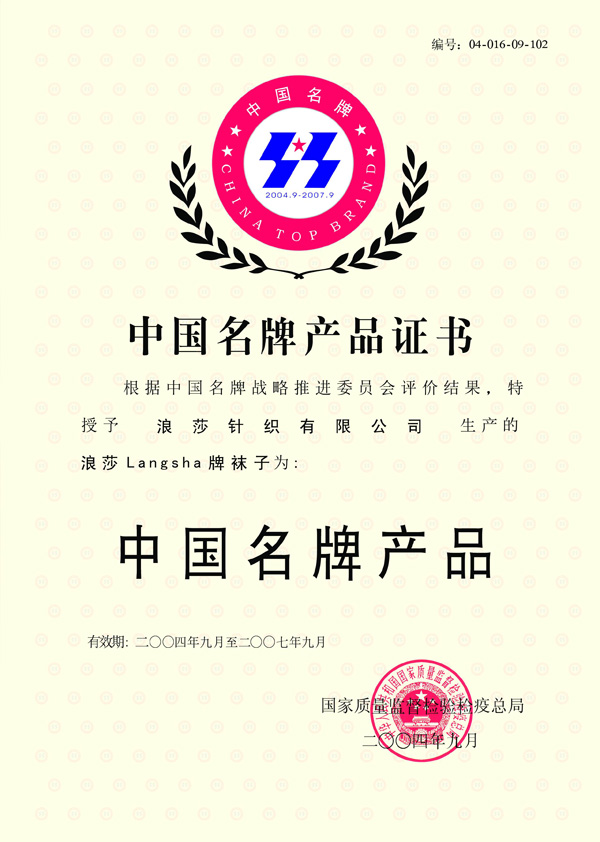 中國(guó)名牌子產(chǎn)品證書(shū)