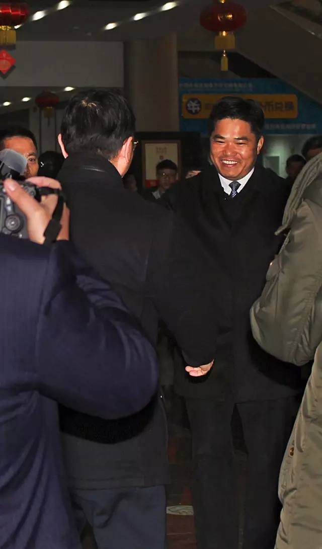 上午9點,市委書記盛秋平、代市長林毅抵達商貿城四區南門,一下車就給商戶們發起春聯,“生意興榮”、“財源廣進”討喜的祝詞引得人們眉開眼笑。