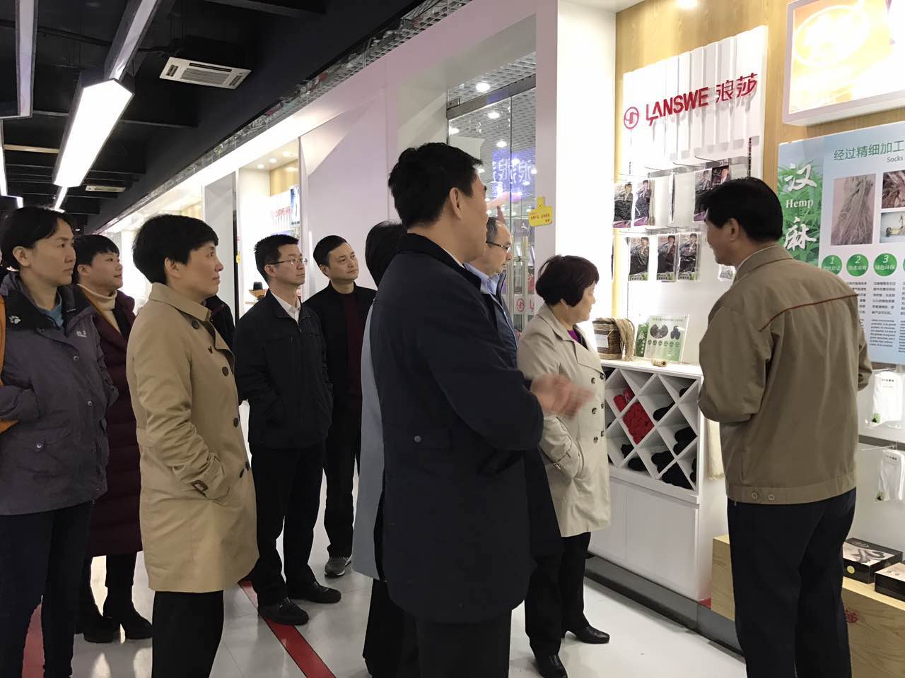 浪莎集團(tuán)總裁翁榮弟陪同各位領(lǐng)導(dǎo)參觀展示廳