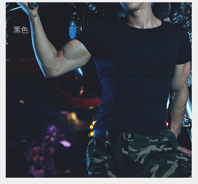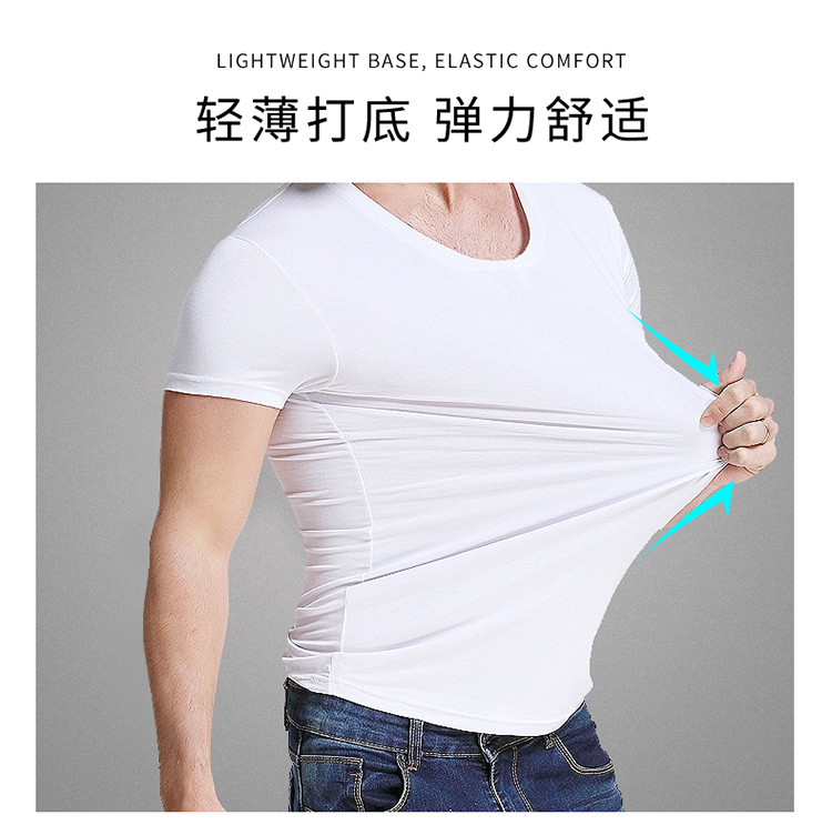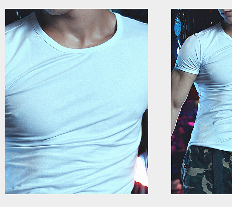 2件浪莎透氣春夏簡約男士彈力棉圓領運動T恤領休閑短袖