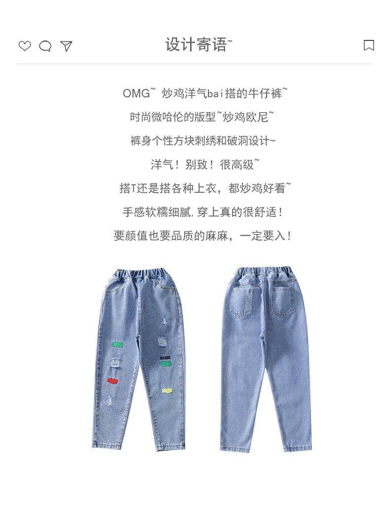 浪莎女童褲子春秋中大童洋氣寬松牛仔褲韓版女兒童裝春秋款休閑褲