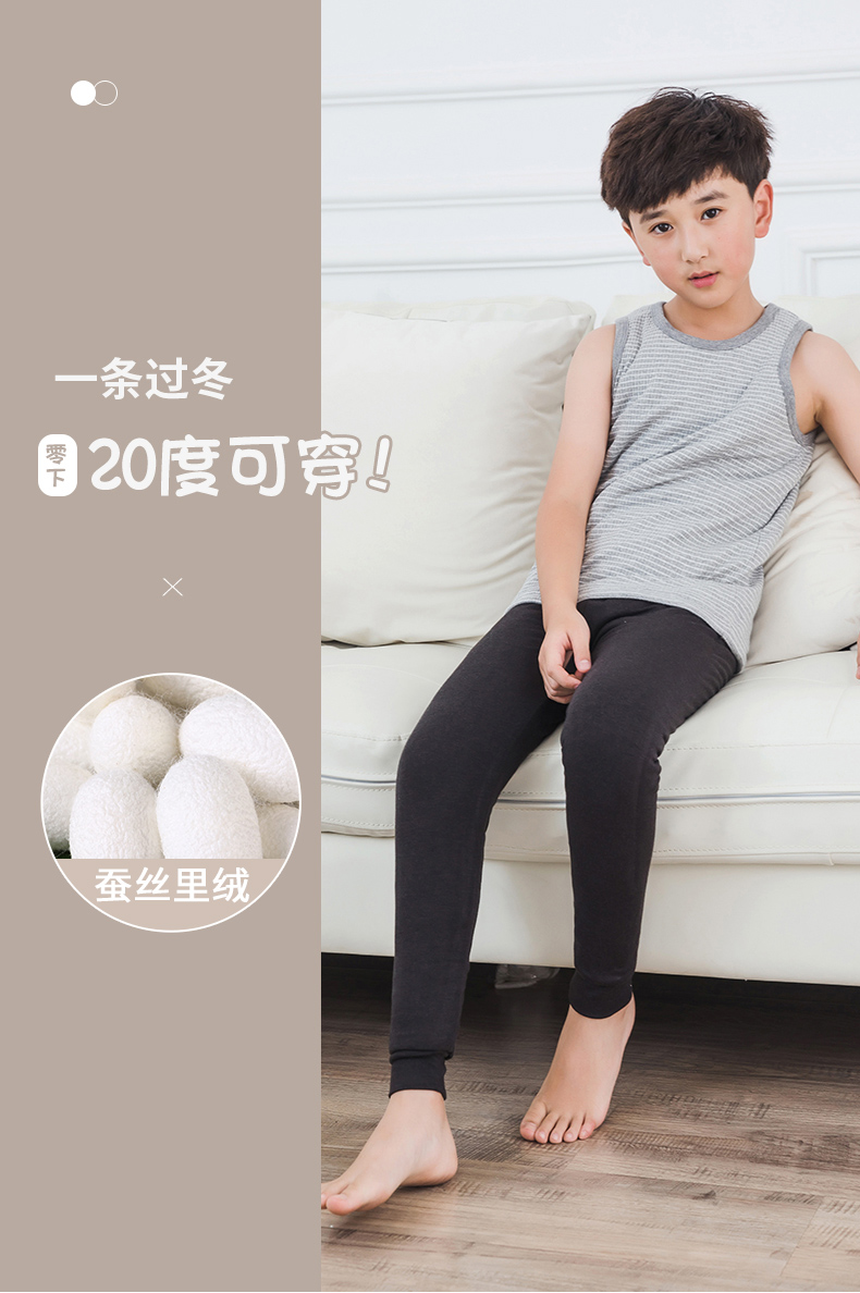 浪莎童裝男童蠶絲打底褲秋冬季中大童保暖棉褲兒童加厚加絨內穿褲