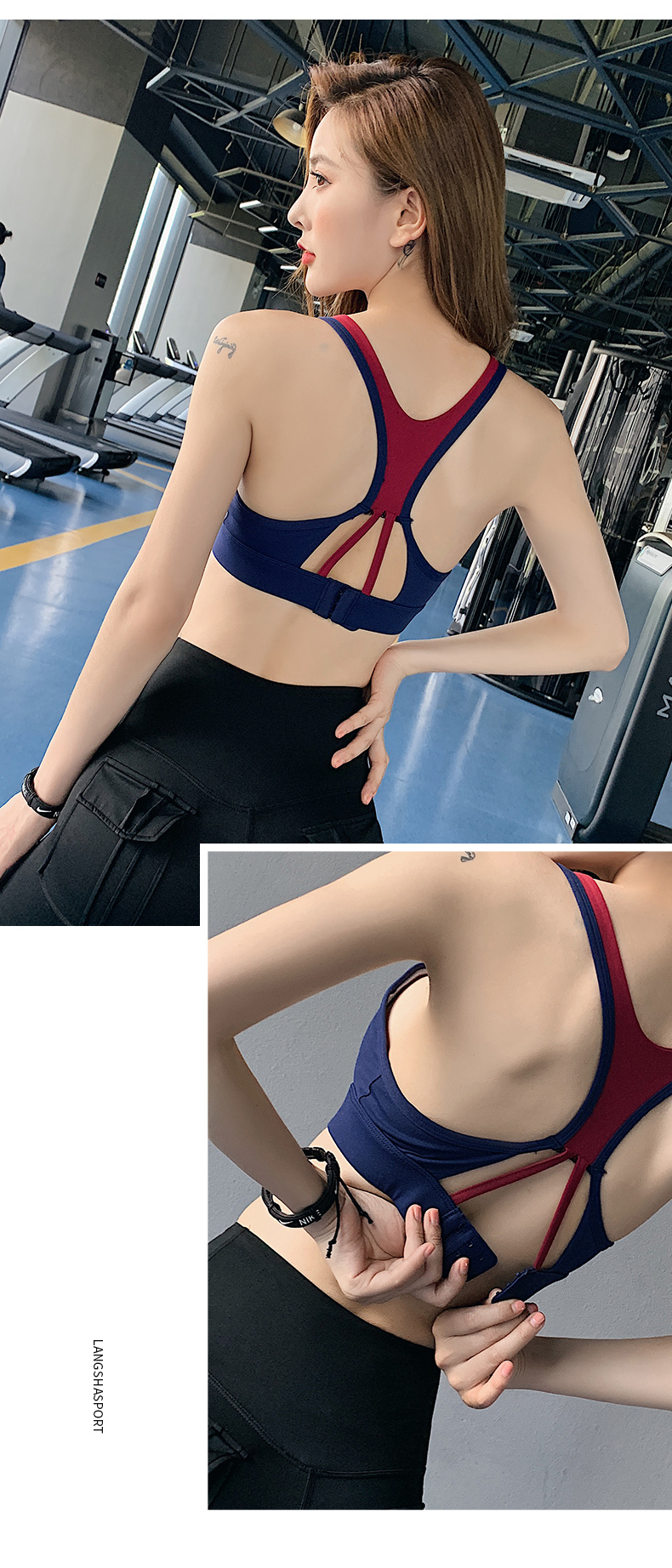 浪莎運動內衣女搭扣防震跑步聚攏定型美背瑜伽背心一體式健身文胸