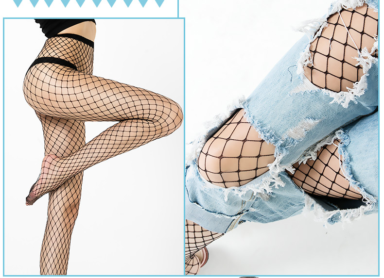 浪莎絲襪春夏超薄性感黑絲襪子女 搭配破洞牛仔褲漁網襪連褲襪