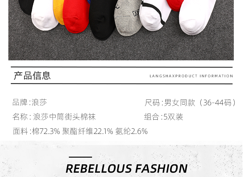 浪莎襪子男中筒襪歐美ins潮春夏季防臭女長(zhǎng)筒襪籃球高幫運(yùn)動(dòng)棉襪