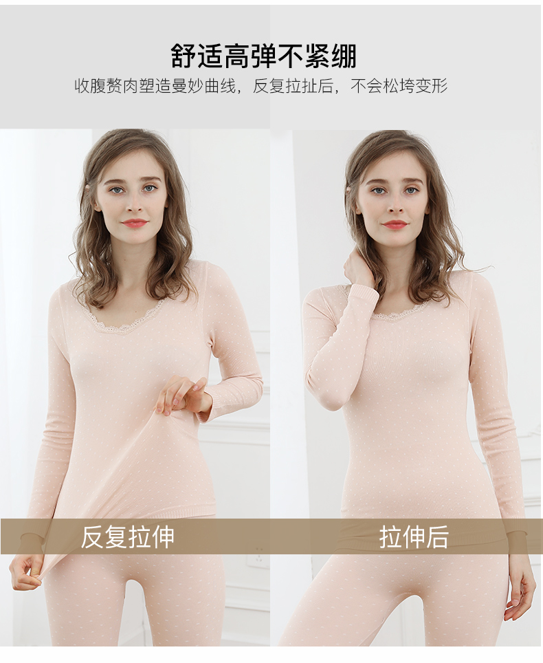 浪莎無(wú)縫提花美體保暖內(nèi)衣套裝女士緊修身薄款秋衣秋褲性感打底冬