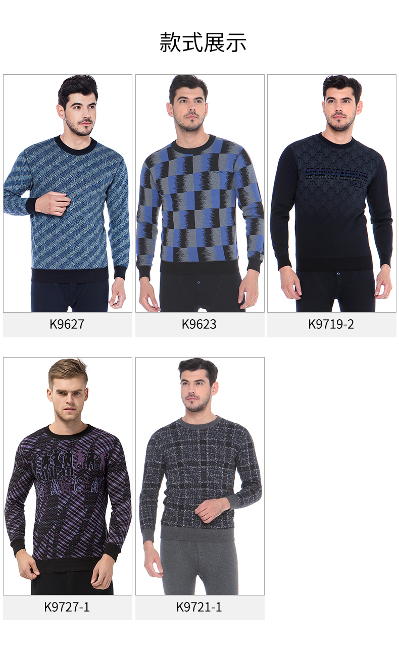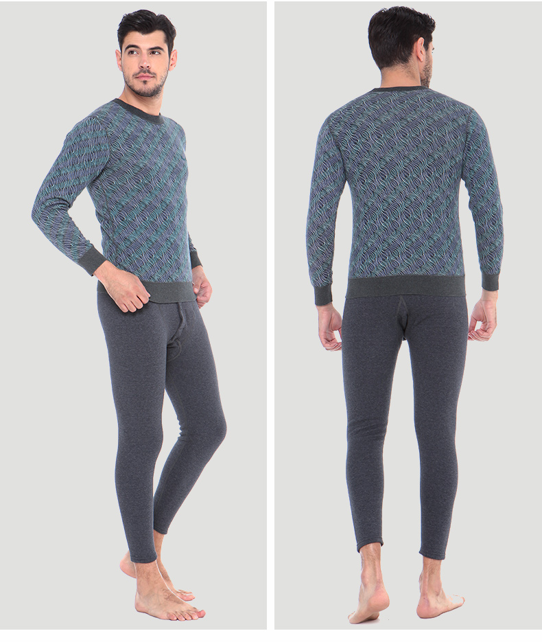 浪莎條紋個性保暖內衣男士加厚加絨中老年人爸爸冬季秋衣秋褲套裝