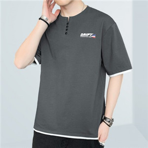 短袖T恤男夏季新款純色寬松百搭假兩件純棉透氣打底衫