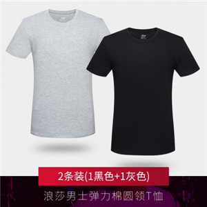 2件浪莎透氣春夏簡(jiǎn)約男士彈力棉圓領(lǐng)運(yùn)動(dòng)T恤領(lǐng)休閑短袖