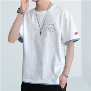 【100%純棉】2021夏季新款男士假兩件趣味卡通印花短袖T恤
